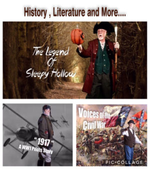*1917: A WW1 Pilots Story *Voices of the Civil War *A Civil War Vets Story *Texas Folk tales and Legends *Ghost Stories *Legend of Sleepy Hollow *Sword in the Stone *Beowulf *Tales of King Arthur *Kids Storytelling Workshop
